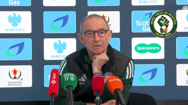When the game kicked off yesterday pockets of Celtic fans tried their best to get the songs going but it was not sustained without the drums and colour of Green Brigade and the Bhoys the only noise you could hear was coming from the Dundee Fans in the away section. Chants of what a Shite home support and keep the board could be heard but when they sang the Billy Boys it was drowned out by Celtic fans boos.
