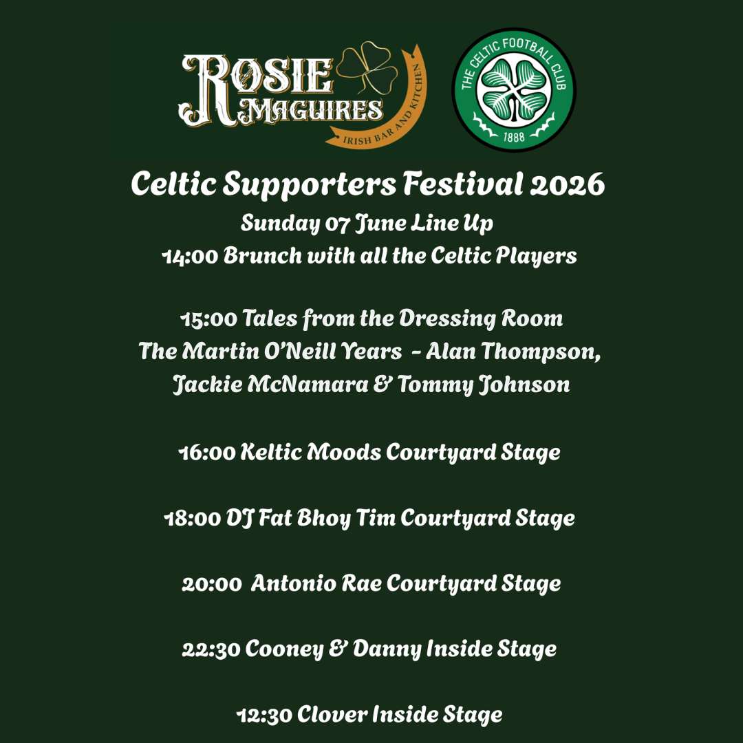 The 3 players will be joining us in Rosie Maguires for the Celtic Festival and on Sunday 07 June at 3pm they will take to the stage to share their stories and tales from the dressing room during that treble winning season and the Road to Seville.